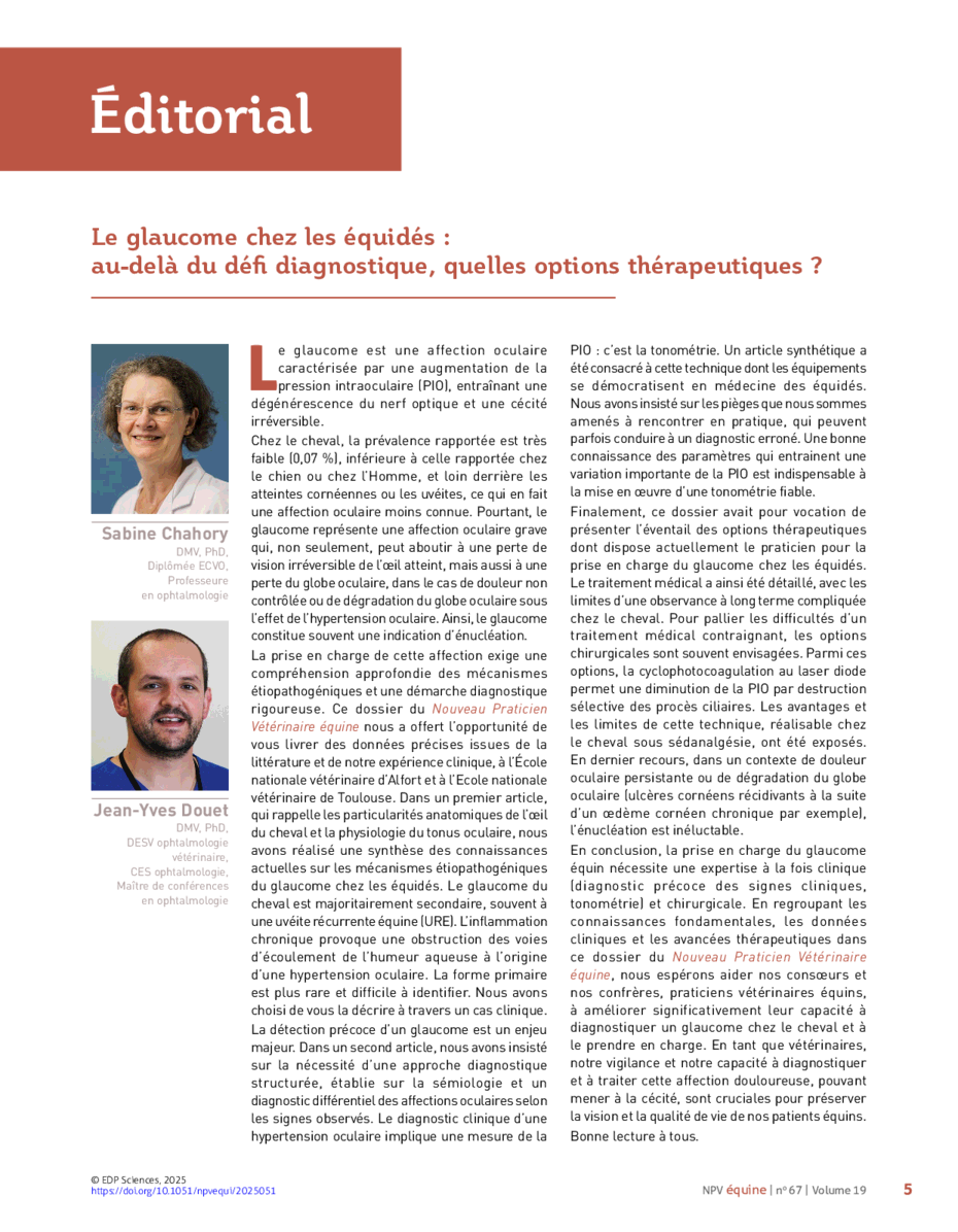 Le Nouveau Praticien Vétérinaire équine 2025; 19(67):5